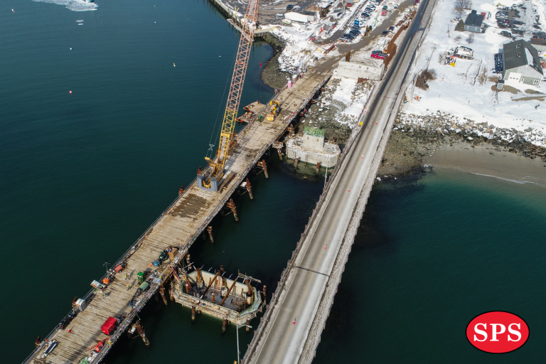 The Seabrook-Hampton project team has continued substructure construction through the winter, with work focused on the precast pier footing elements. All precast pier footings have been lowered into position and are currently in a dewatered condition. Crews will begin installing the permanent reinforcing steel and concrete for each pier footing, followed by construction of the column and the pier cap. Structural bridge steel erection is planned to begin for late winter/ early spring, followed by the concrete bridge deck construction.